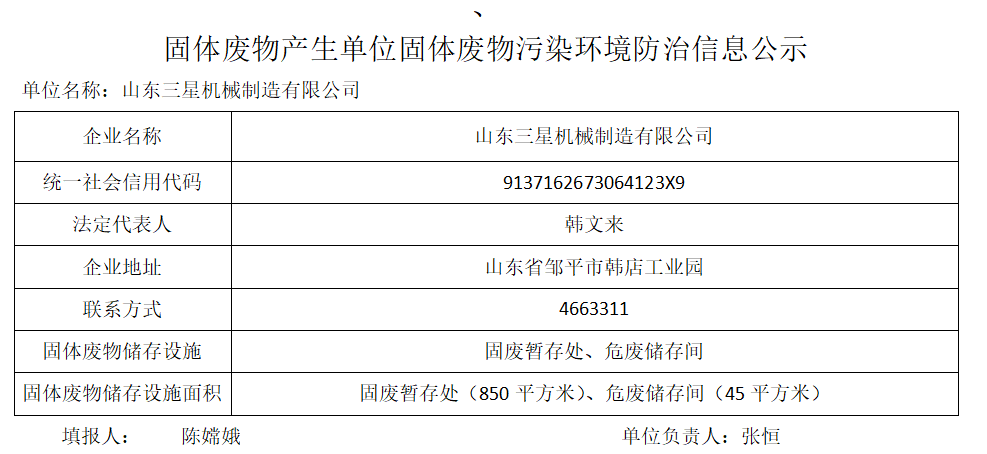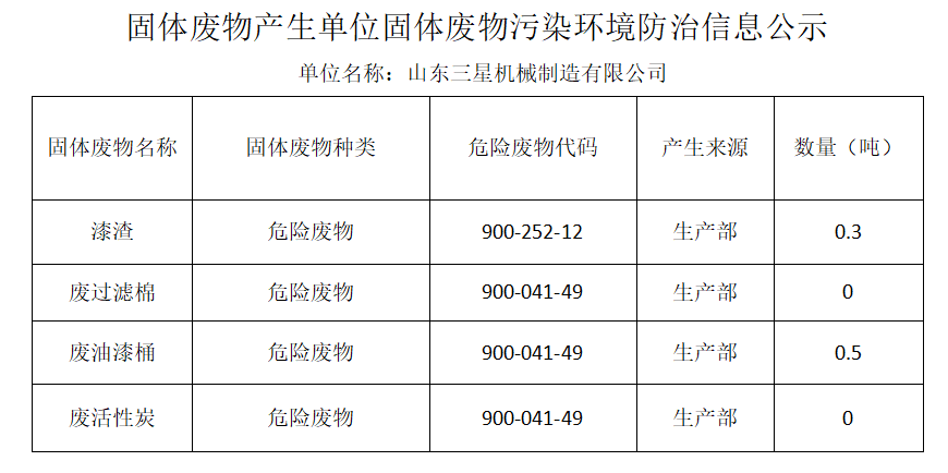 山东三星机械制造有限公司危险废物污染防治信息公示(2021)