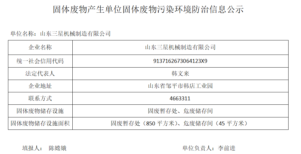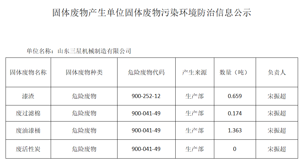 山东三星机械制造有限公司危险废物污染防治信息公示(2022)