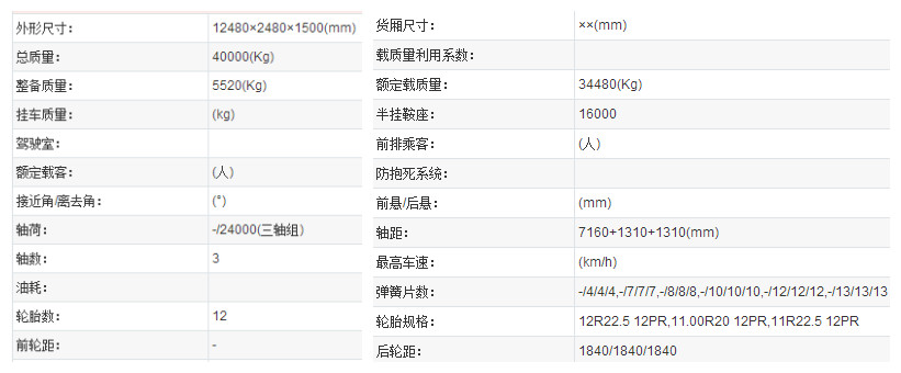 | 后轮距(mm) | 2040/2040/2040 | 轴荷(kg) | -/8000/8000/8000 |